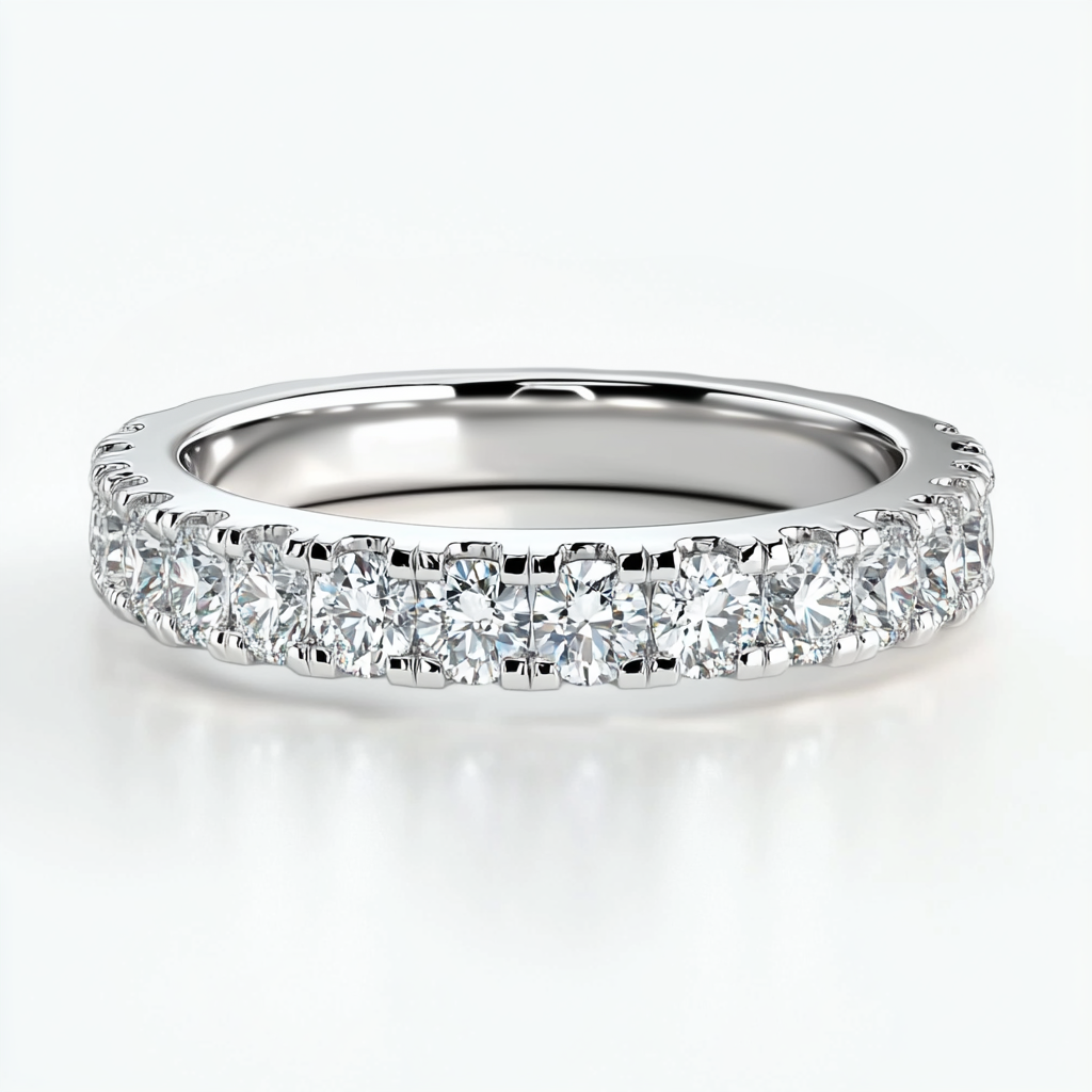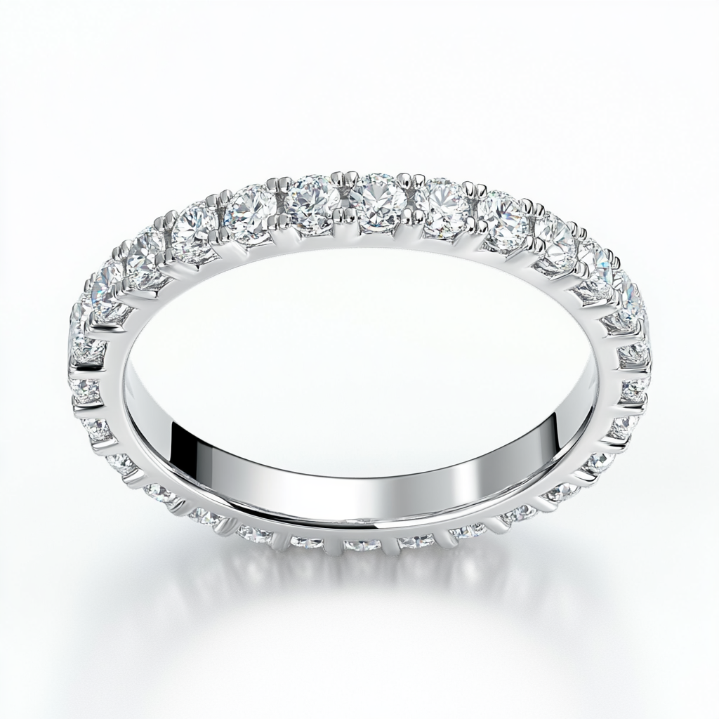 This dazzling eternity band features a continuous circle of meticulously set diamonds symbolizing never-ending love. Each stone maximizes light reflection, creating uninterrupted sparkle in white gold or platinum.