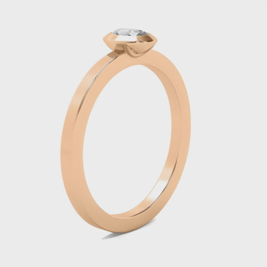 A minimalist triumph featuring a round diamond embraced by a polished bezel setting, offering contemporary elegance with understated sophistication.